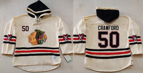 - Men Chicago Blackhawks 50 Corey Crawford Cream Heavyweight Pullover Hoodie Stitched NHL Jersey