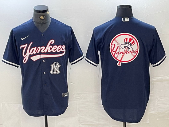- Men New York Yankees Big LOGO Navy Cool Base Stitched Baseball Jersey 22