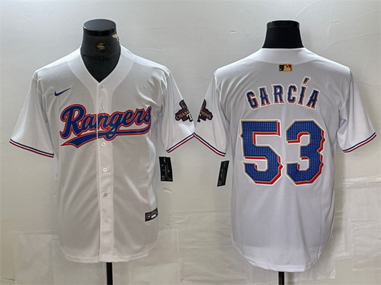 - Men Texas Rangers 53 Adolis Garc EDa Royal 2023 World Series Stitched Baseball Jersey