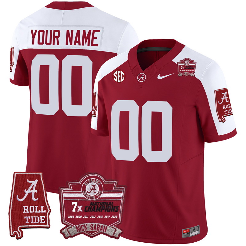 Men Women Youth Alabama Crimson Tide Nick Saban 7x Champions Patch Vapor Custom Jersey All Stitched Crimson Aternate