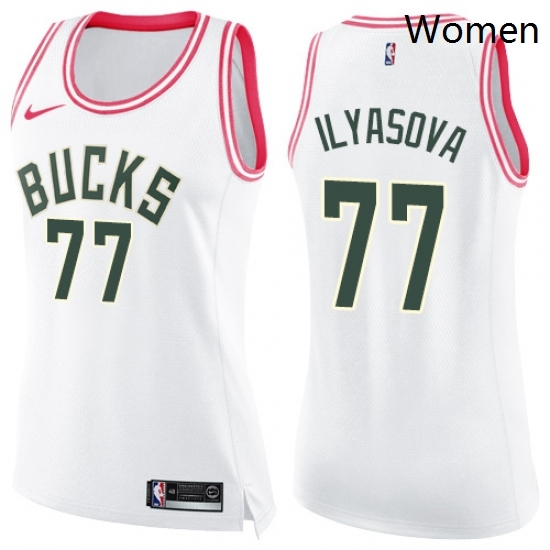 - Womens Nike Milwaukee Bucks 35 Mirza Teletovic Swingman WhitePink Fashion NBA Jersey