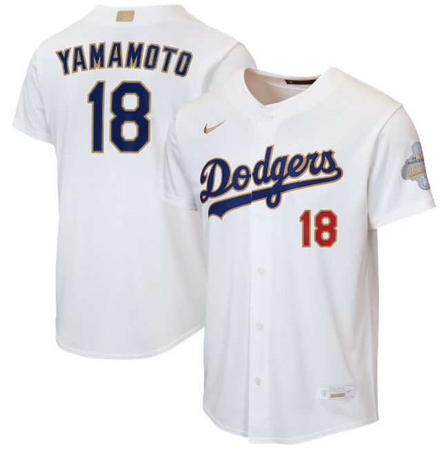 - Youth Los Angeles Dodgers Roki Sasaki Nike White 2026 Gold Collection Kanji Stadium Jersey