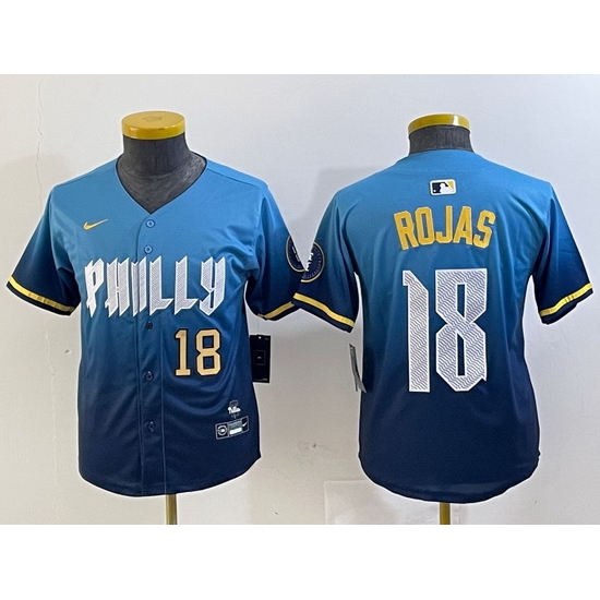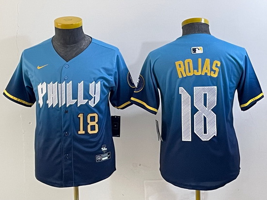 - Youth Philadelphia Phillies 18 Johan Rojas Blue 2024 City Connect Limited Stitched jerseys 3
