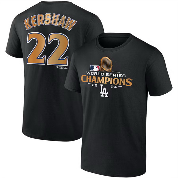 Home>MLB>2024 World Series Champions>T Shirts>Men Los Angeles Dodgers 22 Clayton Kershaw Black 2024 World Series Champions Name 26 Number T Shirt